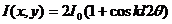 此二束光在BS上相遇,由于激光的相干性,因而產生干涉條紋。干涉條紋的光強I(x,y)由下式?jīng)Q定
