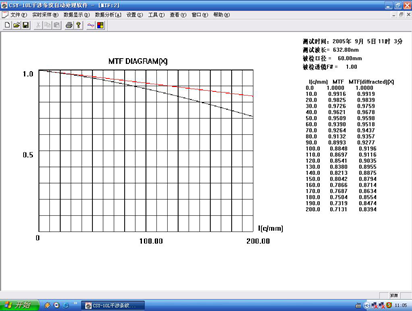 7. 從菜單項中選擇【調(diào)制傳遞函數(shù)(MTF)】,程序自動求得子午和弧氏方向上的傳遞函數(shù)分布圖。