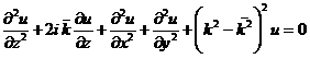 上式除了用慢變場用u表示外,其意義完全等效于精確的亥姆霍茲方程。設場u隨z的變化非常慢,以致式 (3)中的第一項相對于第二項而言可以忽略。在此假設情況下式 (3)可以簡化為
